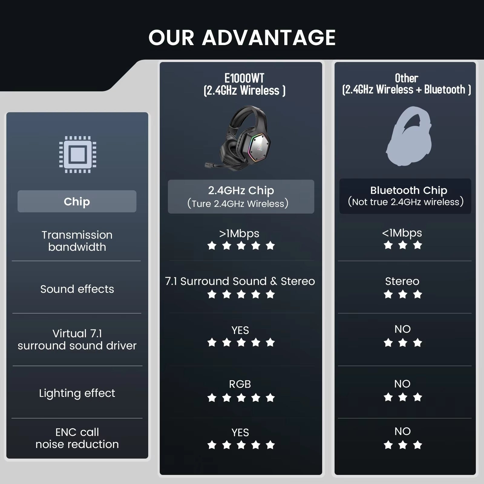 Premium 2.4GHz Wireless Gaming Headset for Mac & iPhone – Low Latency 7.1 Surround Sound Headphones with ENC Microphone, USB & Wired Dual Mode Support
